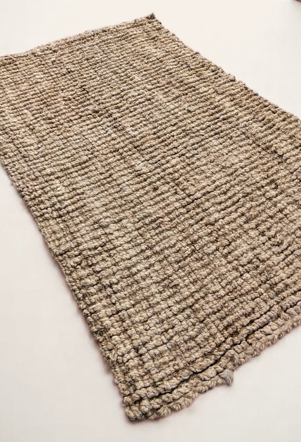 Aegis stands strong in style and texture, with its chunky hand-woven surface crafted from thick natural jute fibers. The pronounced ribbed weave and earthy tan tones lend it a grounded, organic character, while the simple, unfinished edges keep the look raw and rustic. Built for durability and rich in tactile appeal, this rug anchors any space with warmth and authenticity.