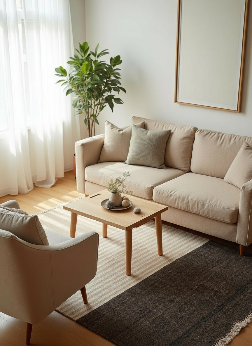 Handmade rugs by Ahsan Imam in natural and neutral tones, capturing the serene beauty of earthy desert landscapes.