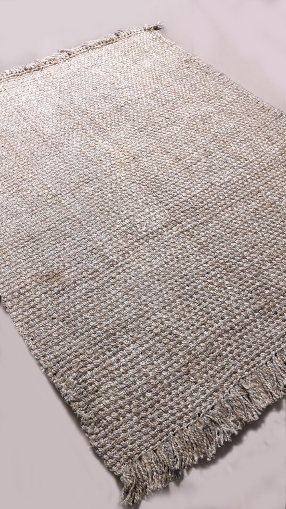 Handmade rugs by Ahsan Imam in natural and neutral tones, capturing the serene beauty of earthy desert landscapes.