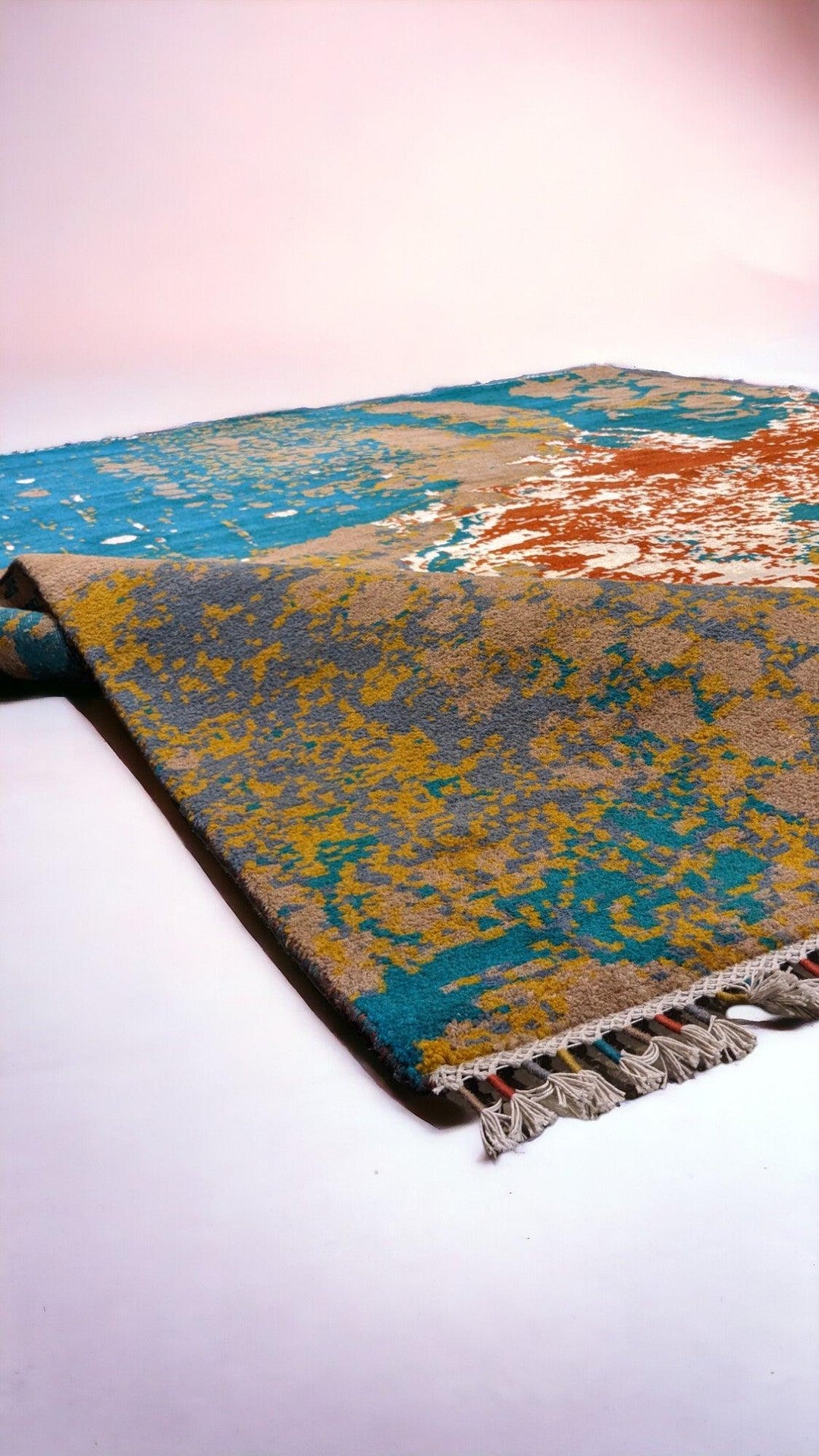 Handmade rugs by Ahsan Imam in natural and neutral tones, capturing the serene beauty of earthy desert landscapes.