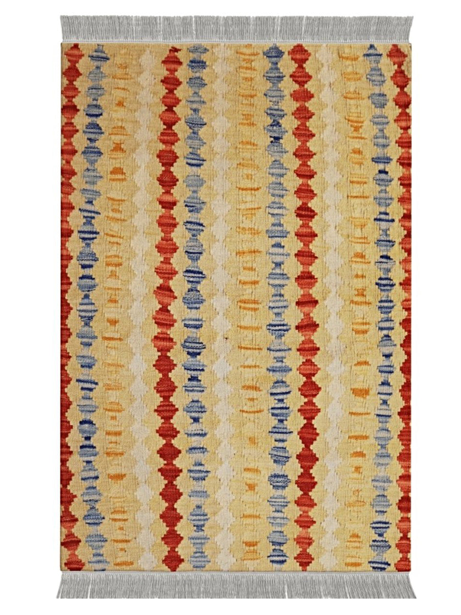 Each rug is a unique, hand-knotted work of art with traditional symbols, this Afghani Chobi Kilim will bring warmth and character to any space. A flatwoven kilim carpet, it is both durable and a natural water-repellent material that lasts for many years. Natural soil-repellant, this kilim rug is durable and can be used on both sides of the weaving. The Afghani Chobi Kilim has the following qualities: