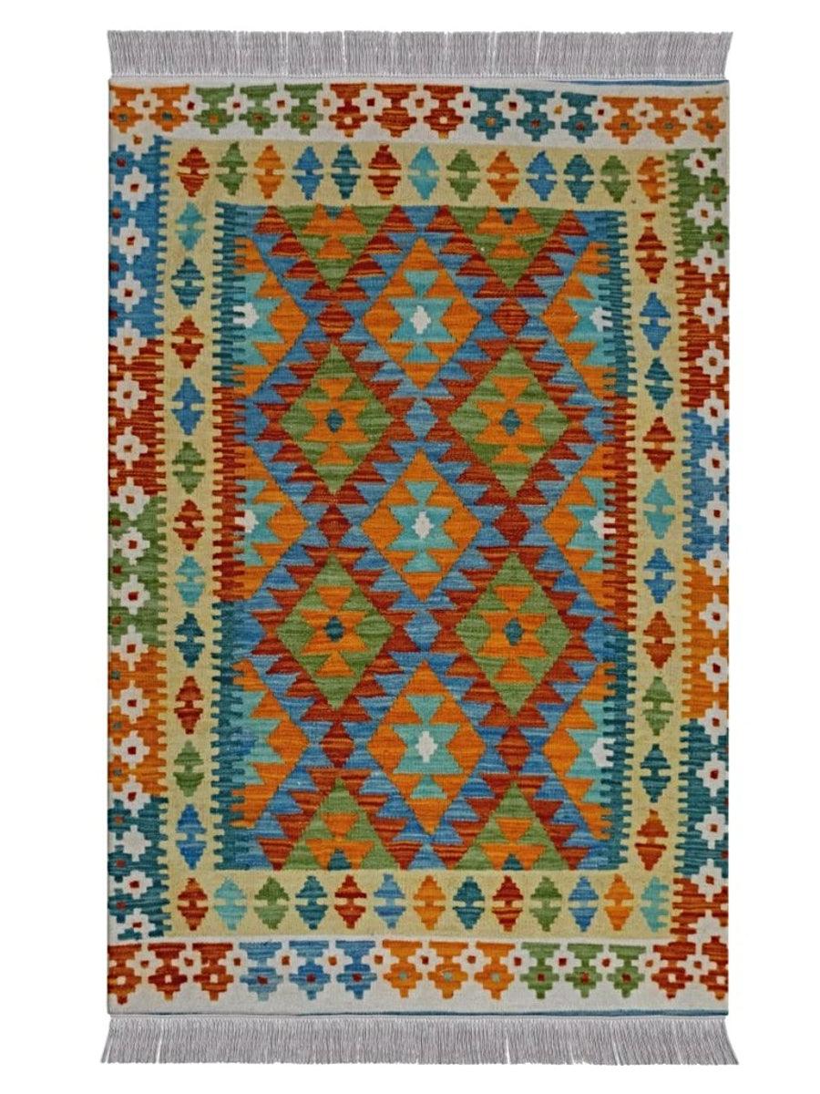 Each rug is a unique, hand-knotted work of art with traditional symbols, this Afghani Chobi Kilim will bring warmth and character to any space. A flatwoven kilim carpet, it is both durable and a natural water-repellent material that lasts for many years. Natural soil-repellant, this kilim rug is durable and can be used on both sides of the weaving. The Afghani Chobi Kilim has the following qualities:
