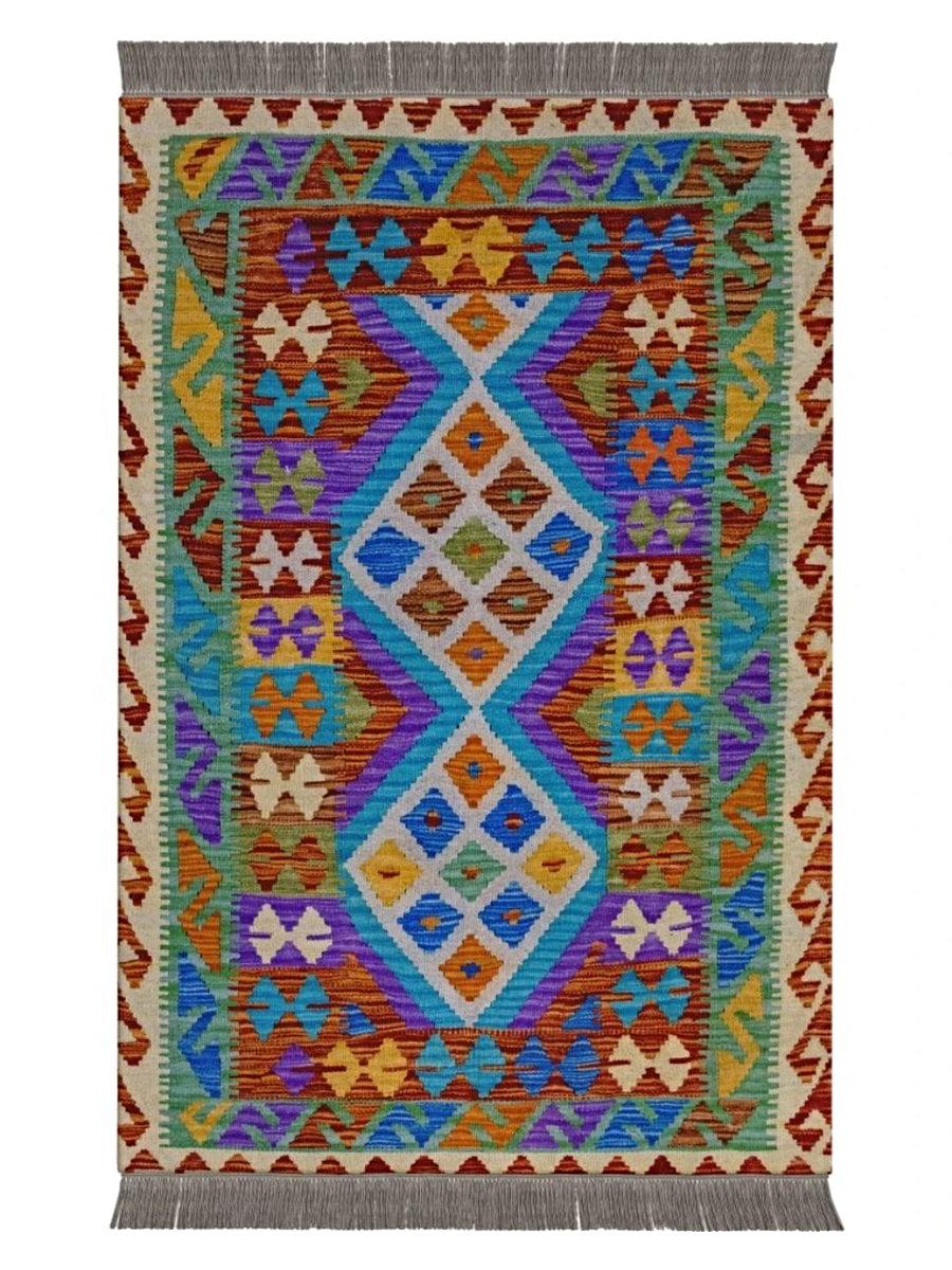 Each rug is a unique, hand-knotted work of art with traditional symbols, this Afghani Chobi Kilim will bring warmth and character to any space. A flatwoven kilim carpet, it is both durable and a natural water-repellent material that lasts for many years. Natural soil-repellant, this kilim rug is durable and can be used on both sides of the weaving. The Afghani Chobi Kilim has the following qualities: