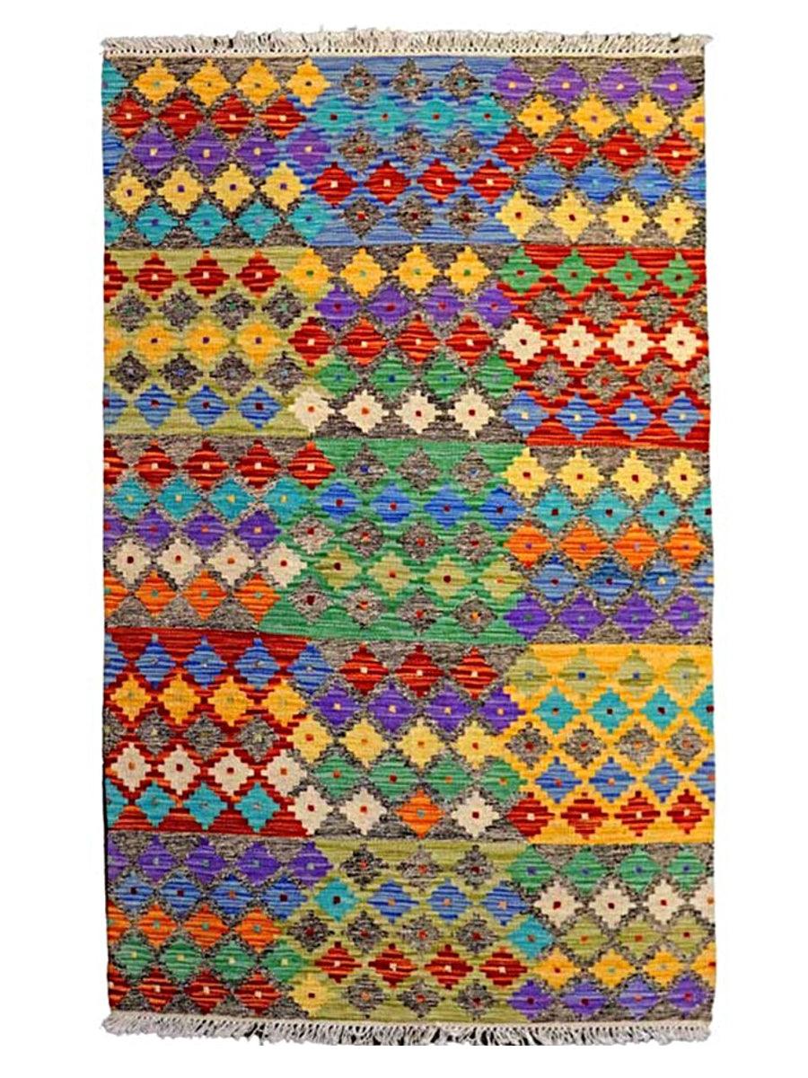 Each rug is a unique, hand-knotted work of art with traditional symbols, this Afghani Chobi Kilim will bring warmth and character to any space. A flatwoven kilim carpet, it is both durable and a natural water-repellent material that lasts for many years. Natural soil-repellant, this kilim rug is durable and can be used on both sides of the weaving. The Afghani Chobi Kilim has the following qualities: