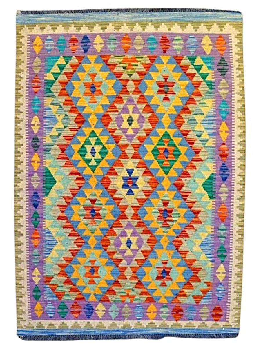 Each rug is a unique, hand-knotted work of art with traditional symbols, this Afghani Chobi Kilim will bring warmth and character to any space. A flatwoven kilim carpet, it is both durable and a natural water-repellent material that lasts for many years. Natural soil-repellant, this kilim rug is durable and can be used on both sides of the weaving. The Afghani Chobi Kilim has the following qualities: