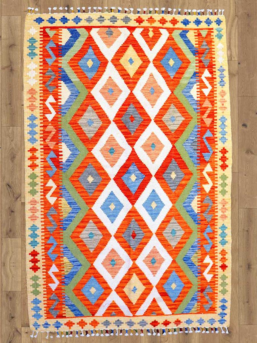 Each rug is a unique, hand-knotted work of art with traditional symbols, this Afghani Chobi Kilim will bring warmth and character to any space. A flatwoven kilim carpet, it is both durable and a natural water-repellent material that lasts for many years. Natural soil-repellant, this kilim rug is durable and can be used on both sides of the weaving. The Afghani Chobi Kilim has the following qualities: