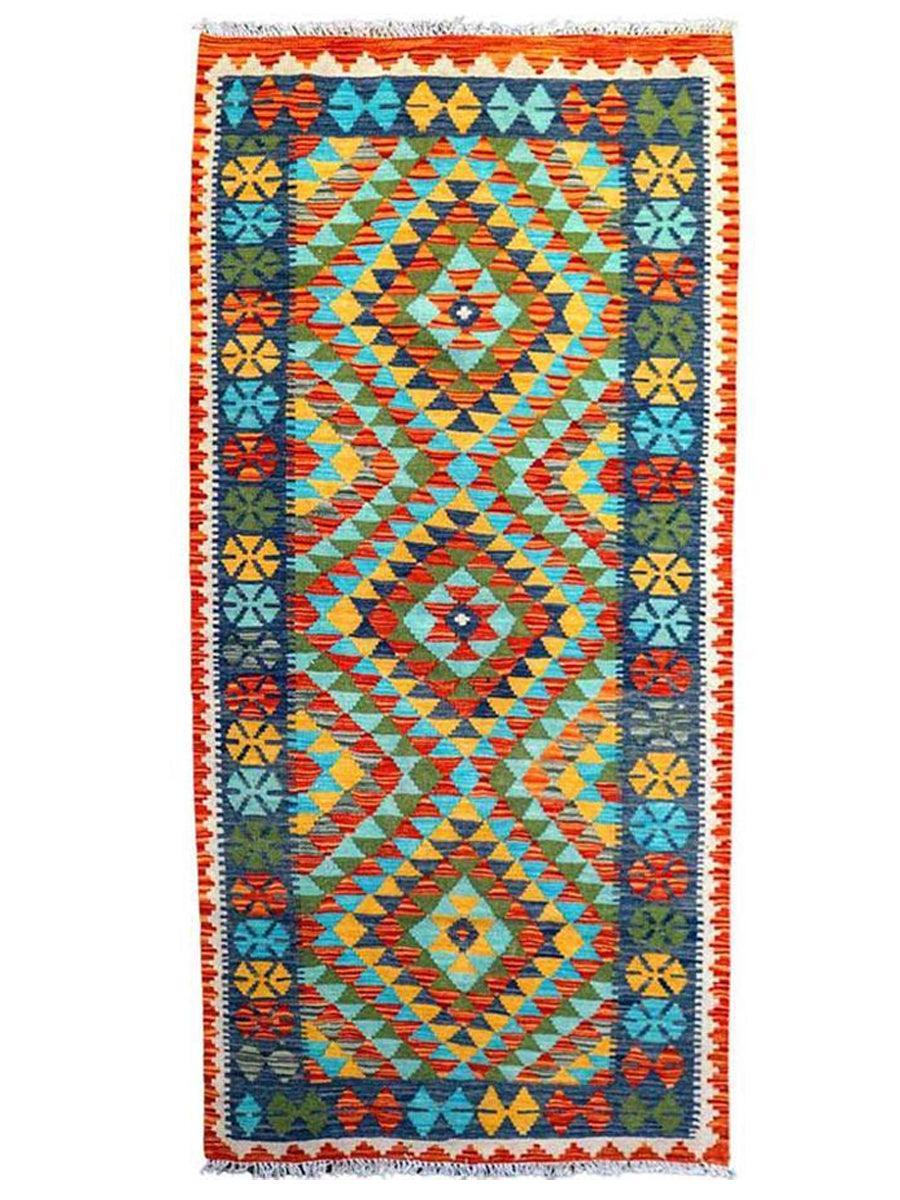 Each rug is a unique, hand-knotted work of art with traditional symbols, this Afghani Chobi Kilim will bring warmth and character to any space. A flatwoven kilim carpet, it is both durable and a natural water-repellent material that lasts for many years. Natural soil-repellant, this kilim rug is durable and can be used on both sides of the weaving. The Afghani Chobi Kilim has the following qualities: