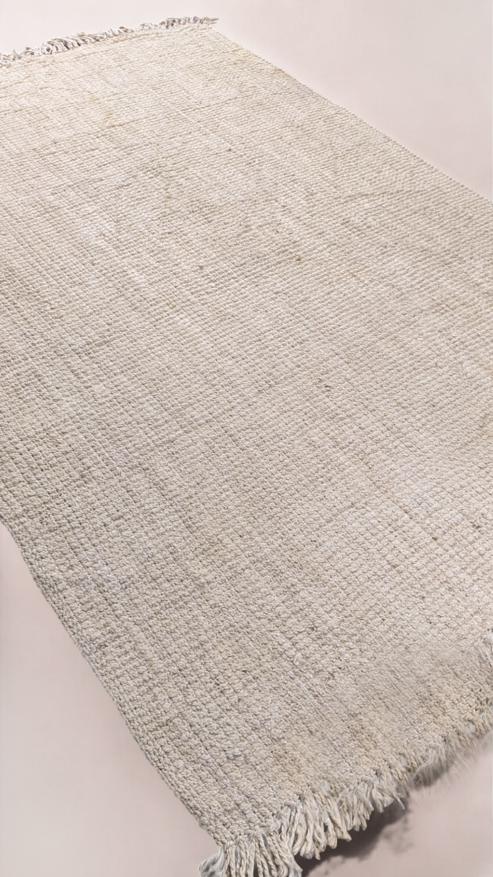 Handmade rugs by Ahsan Imam in natural and neutral tones, capturing the serene beauty of earthy desert landscapes.