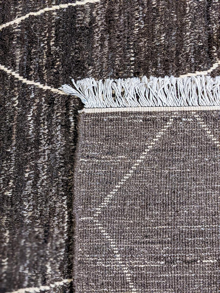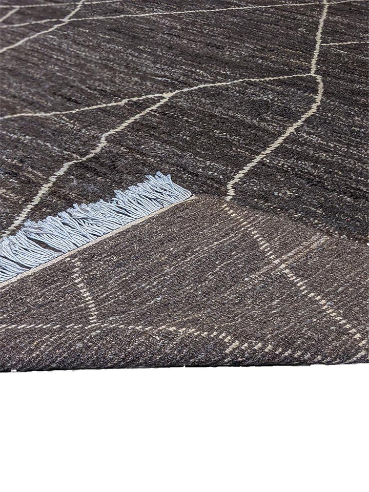 This handmade Essaouira Moroccan Rug from Imam Carpet measures 9' x 6.2', and is crafted from premium Pakistani wool. It is hand-knotted with a modern gray color palette, perfect for instantly enhancing the look of any bedroom, living room, or kid's room.