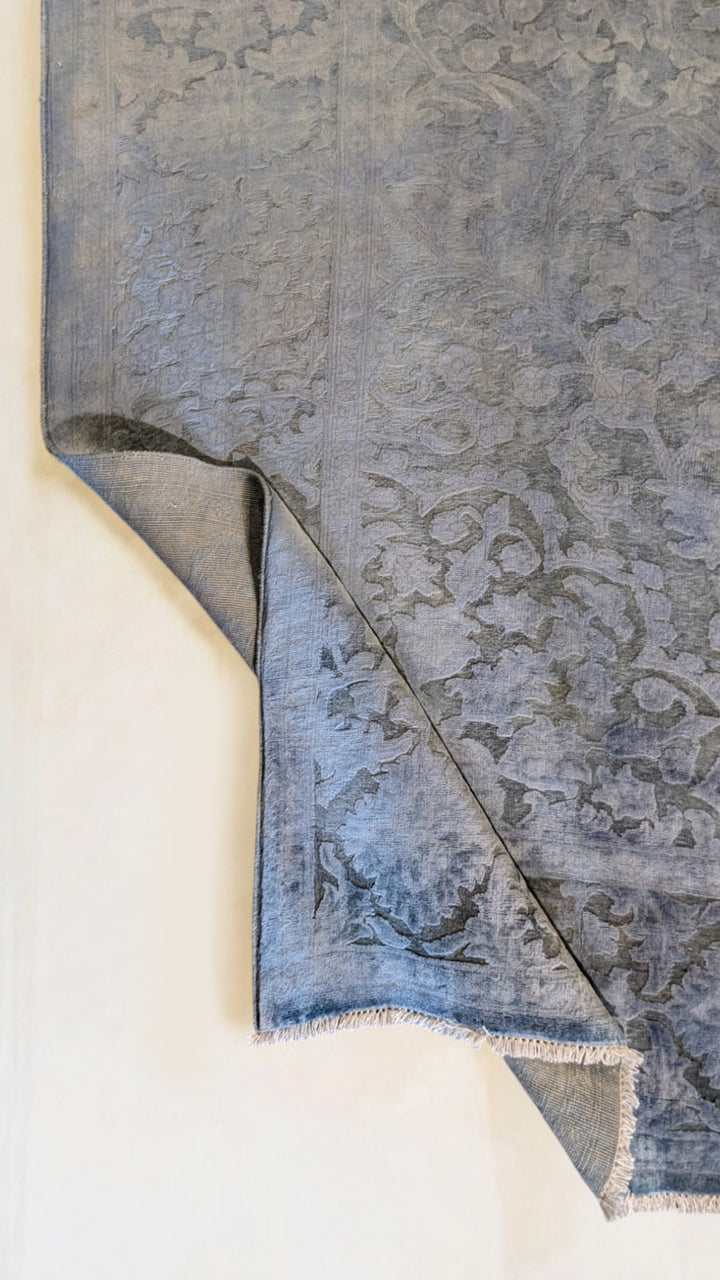 The epitome of understated vintage charm. With its soft, dusty blue-gray hues, this rug whispers stories of time and age. Its intricate, faded floral motifs and curvilinear patterns are delicately woven into the fabric, giving the rug a texture that feels both timeless and lived-in.