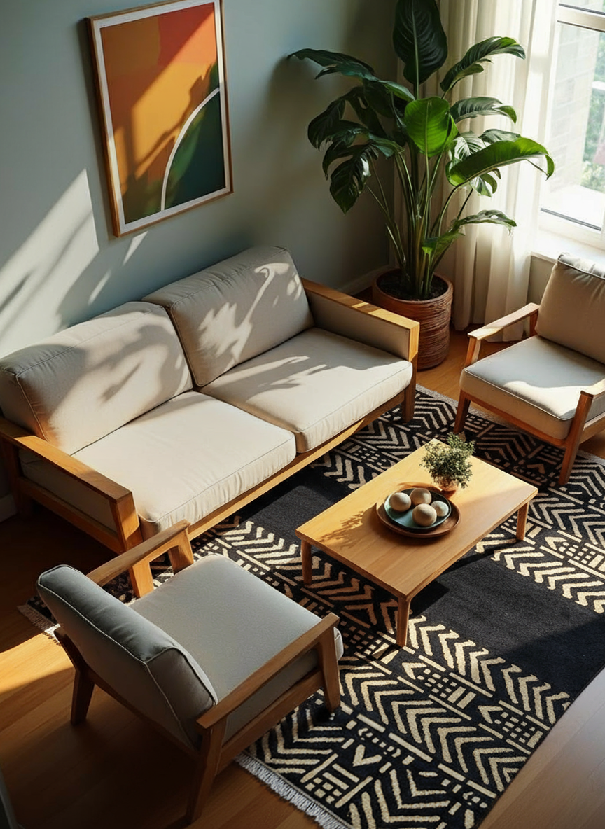 • The rug's colors and patterns shift dramatically with your perspective, coming alive in rich vibrancy when the fibers face you, softening to subtle elegance as they turn away. This inherent interplay is not a flaw, but an elevating quality that renders the rug an interactive work of art.