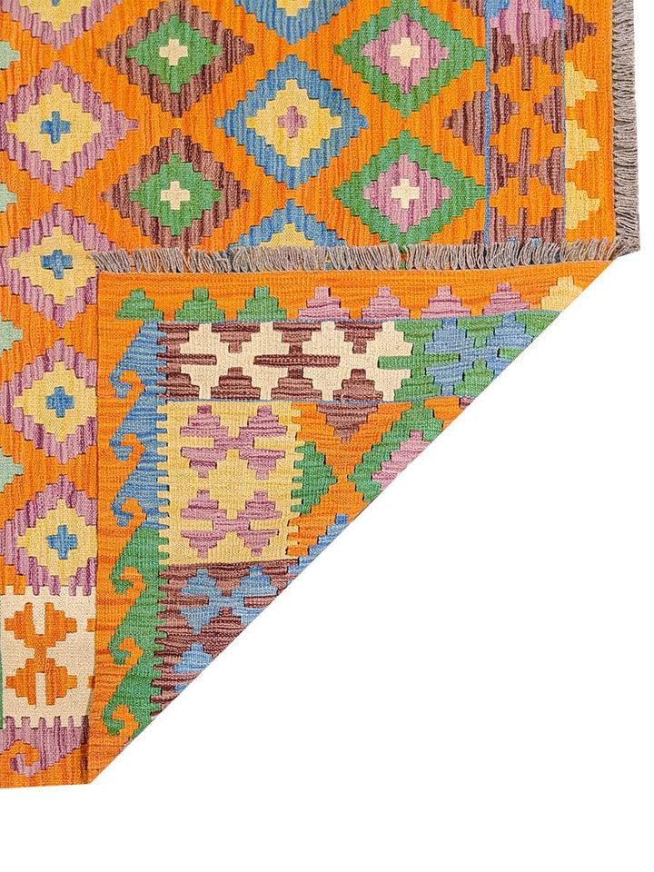 Introducing the exquisite Afghan Chobi Kilim. Hand-woven with 100% wool, this modern-style rug is imported and exclusively available at Imam Carpet Co. Add a touch of color and warmth to your living room, bedroom, or even your kid's room. With a size of 6.4 x 4.11, it's the perfect statement piece for any space.
