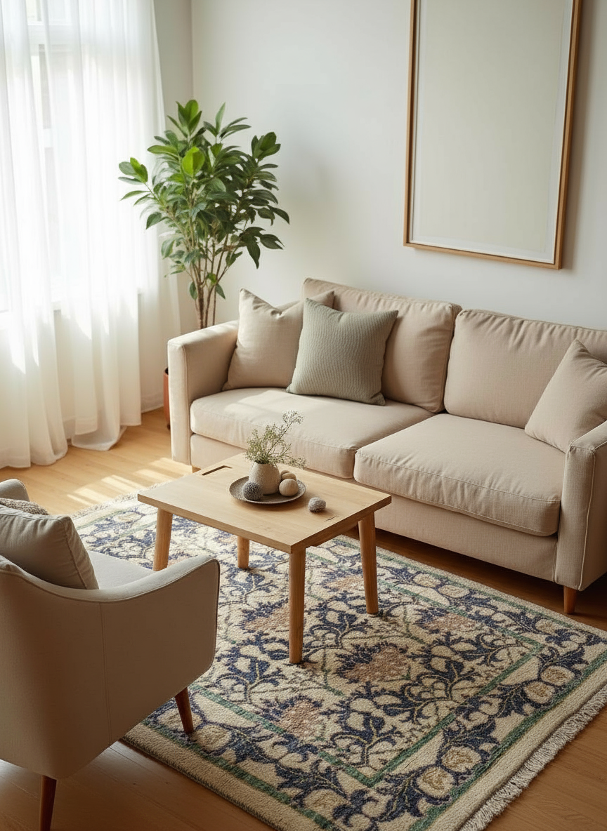 Handmade rugs by Ahsan Imam in natural and neutral tones, capturing the serene beauty of earthy desert landscapes.